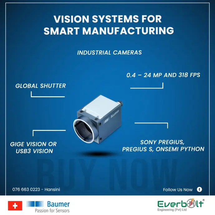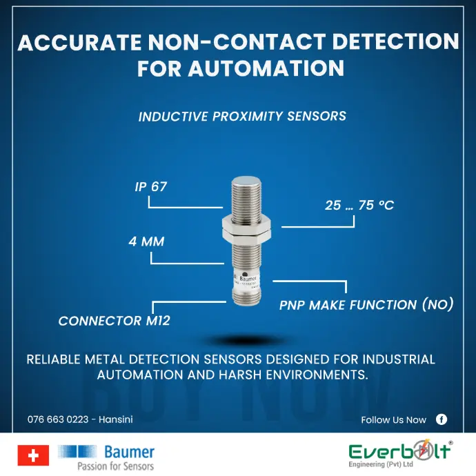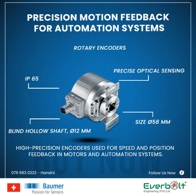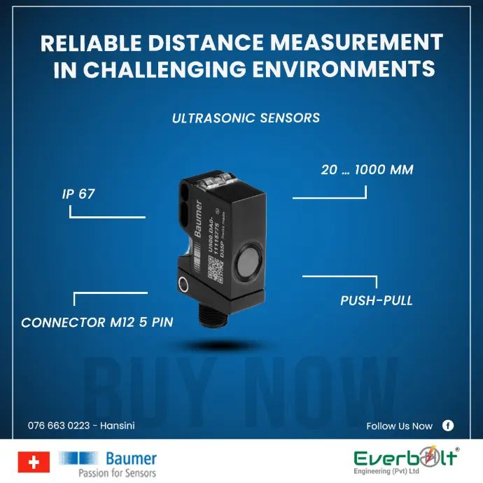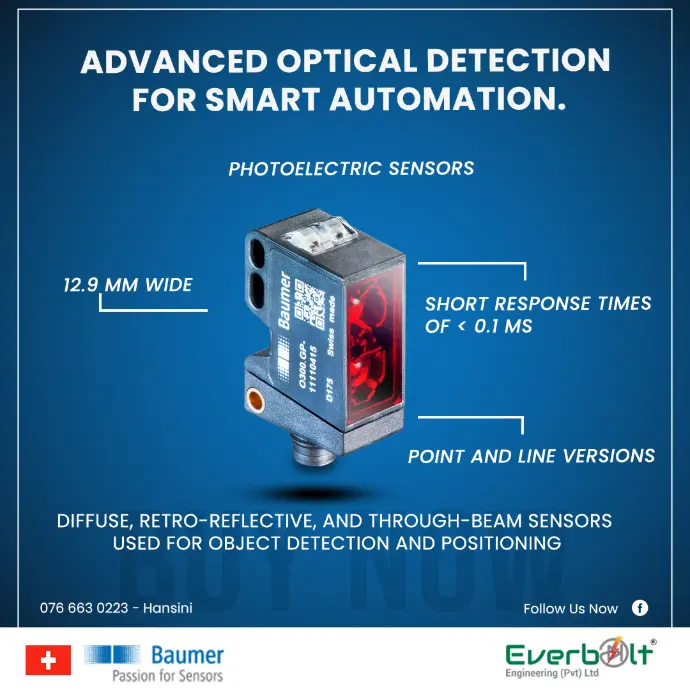 Everbolt Engineering Pvt Ltd is the authorized representative of Baumer in Sri Lanka, providing world-class industrial sensing and automation solutions. Baumer is a global leader in high-quality sensors, encoders, vision systems, and process instruments, known for their precision, reliability, and innovative design. With a strong commitment to excellence, Baumer products ensure accurate and efficient performance across various sectors, including manufacturing, logistics, and process automation. Partner with us to enhance industrial productivity and operational reliability with Baumer’s cutting-edge technology.