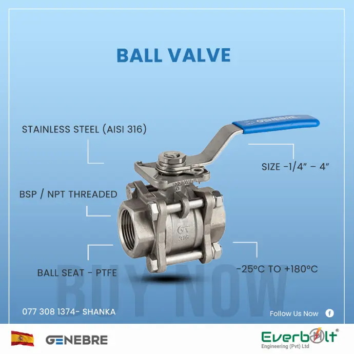 Everbolt Engineering Pvt Ltd is the authorized representative of Genebre in Sri Lanka, providing world-class fluid control and industrial automation solutions for various industries. Genebre is a globally recognized leader in valves, fittings, and fluid control systems, offering high-quality and reliable solutions for sectors such as water management, HVAC, gas distribution, and industrial processing.
